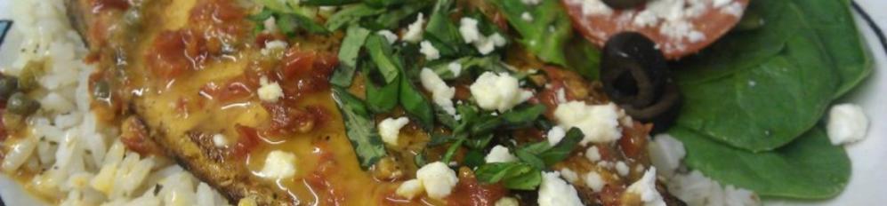 Tilapia seasoned with traditional Greek spices and pan-seared. Served on a bed of zucchini noodles, along with fire-roasted corn-tomato medley and finished with a sun-dried tomato caper butter, feta cheese, and fresh basil.
